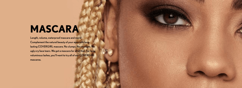 Covergirl is known for their beauty supplies and makeup, and it is no secret that they primarily advertise to women as their target audience. This advertisement is no exception.